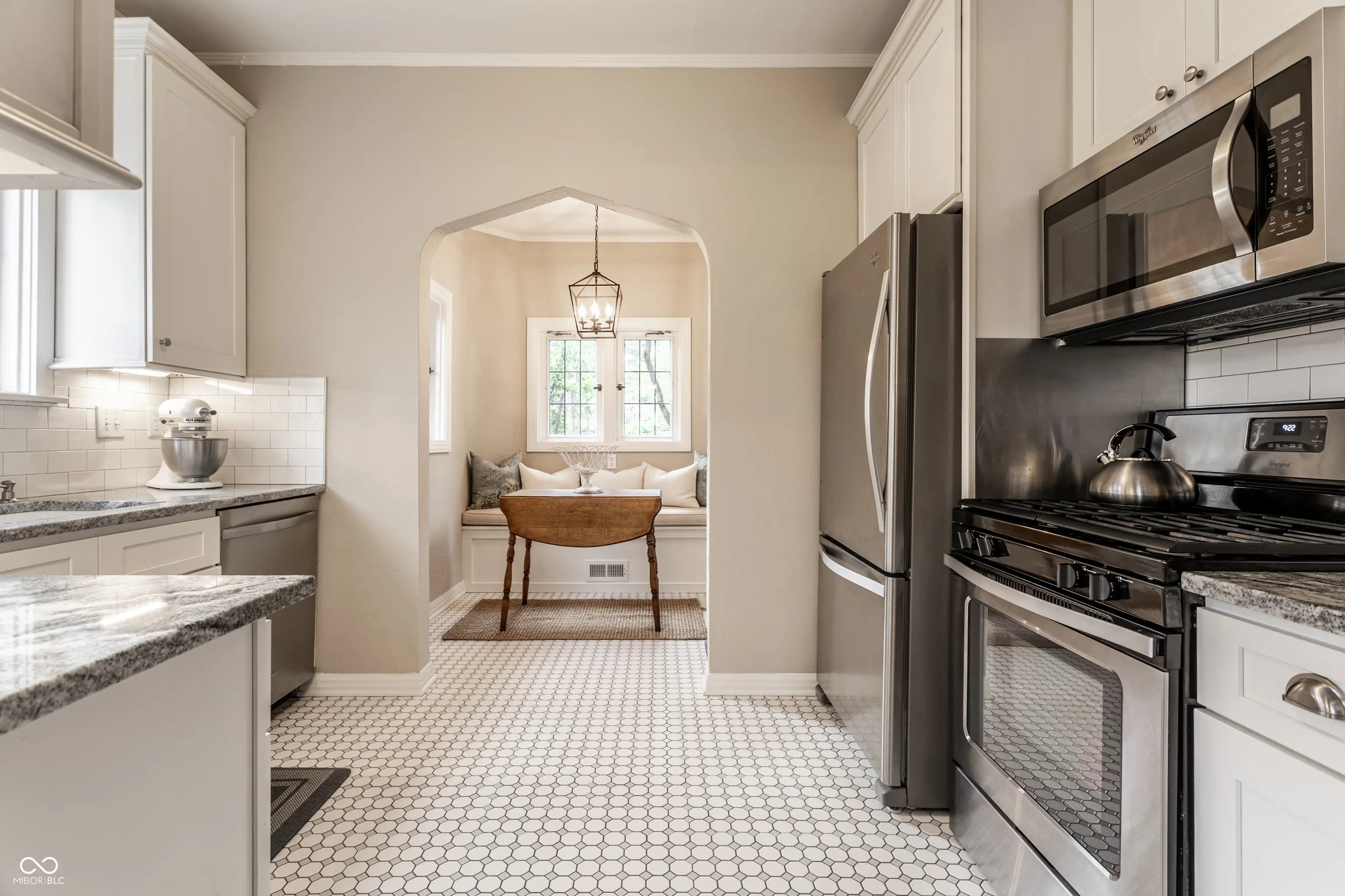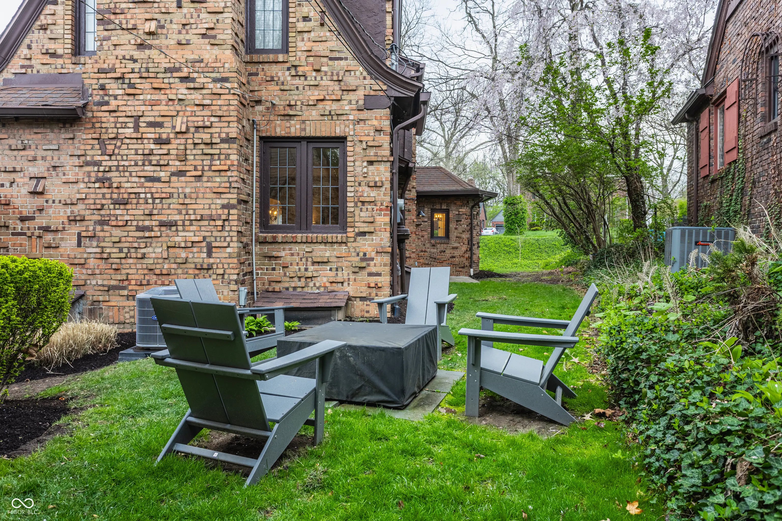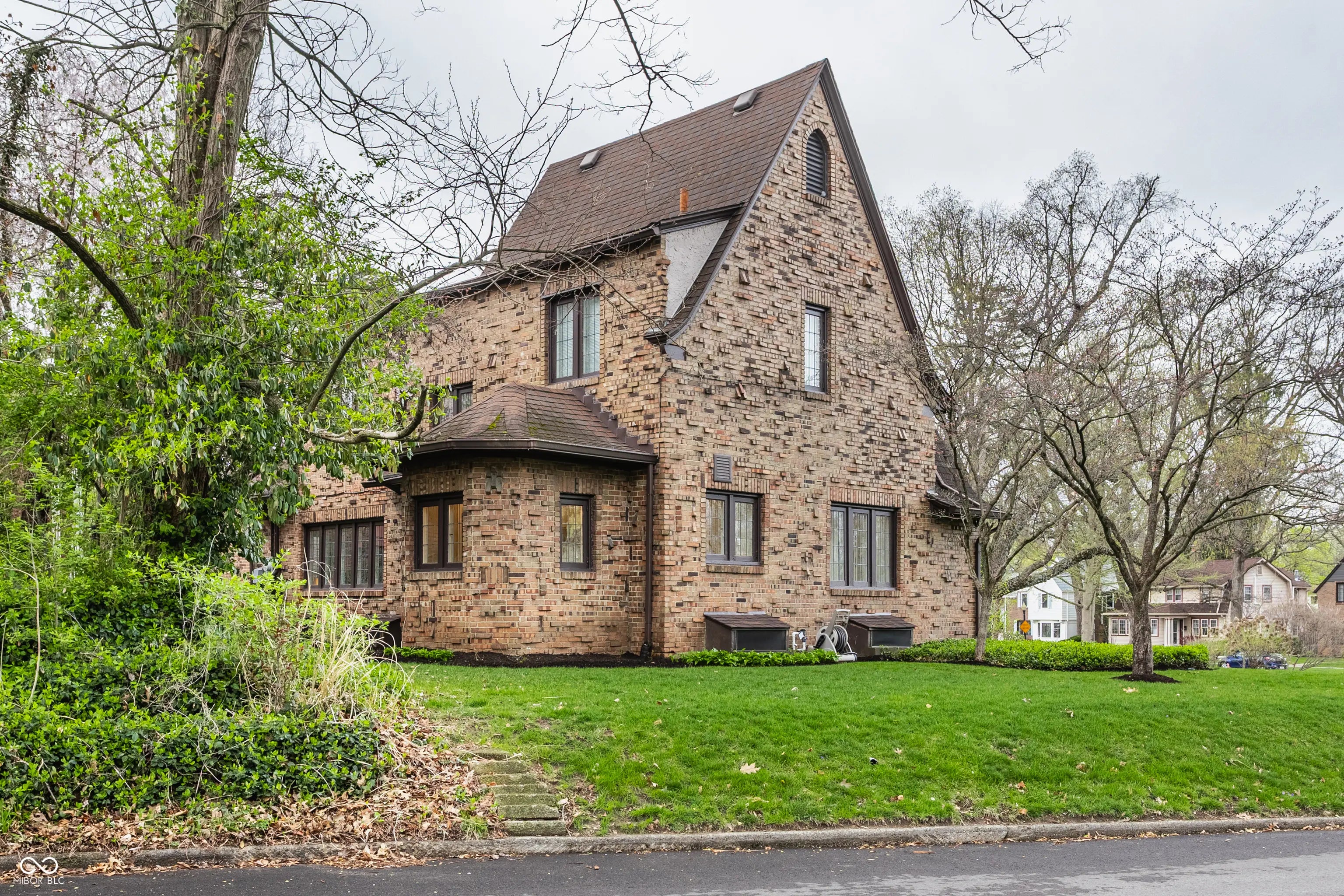 Absolute perfection! This meticulously maintained storybook home in Forest Hills radiates curb appeal from the moment you arrive. Every detail has been thoughtfully updated, blending timeless character, classic charm, and modern convenience. The main level welcomes you with a spacious living room featuring stunning leaded glass windows and a cozy fireplace-perfect for relaxing evenings. Beautiful hardwood floors run throughout, and every room has been freshly painted, including trim, walls, and crown molding, making this home truly move-in ready. From elegant arched doorways to serene, private gardens, this home feels like a peaceful oasis rich with history and charm. The formal dining room is filled with incredible natural light, creating an inviting space for gatherings and entertaining. The updated kitchen boasts granite countertops, stainless steel appliances, and an absolutely delightful breakfast nook-ideal for morning coffee or casual meals. Upstairs, you'll find two generously sized bedrooms, each with walk-in closets (the primary features two!). A beautifully updated full bathroom in the hall serves both bedrooms. The finished basement offers incredible flexibility, featuring a comfortable family room with newer carpet-or the potential for a third bedroom thanks to two egress windows-along with a full bathroom. The utility and laundry room is exceptionally clean and well-maintained. Enjoy added peace of mind with a newer perimeter drainage system and sump pump with battery backup. Washer and dryer are included. The irrigation system keeps the landscaping lush and vibrant with ease. Enjoy all seasons under the covered front porch, overlooking the incredible landscaped yard. Located just steps from the Monon Trail and the shops and dining along 54th Street, this unbeatable location perfectly complements the home's charm and livability.