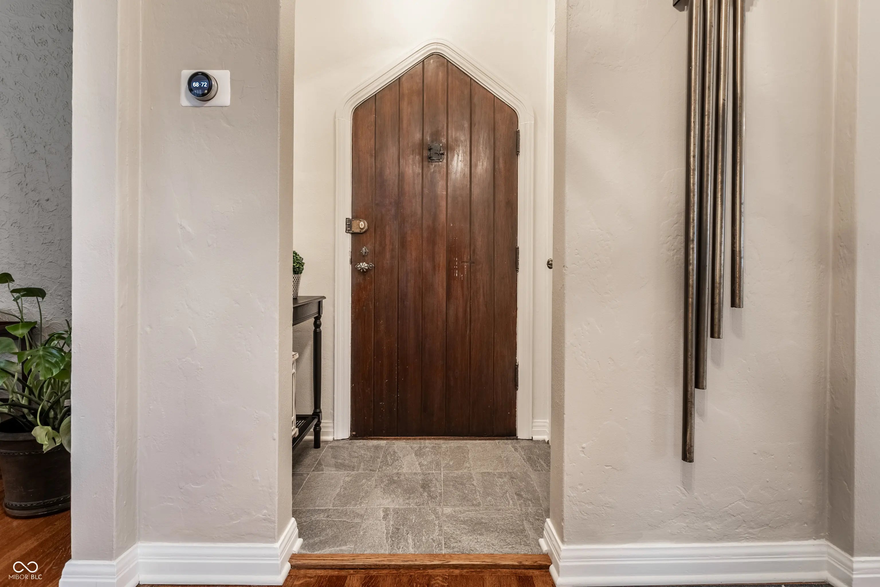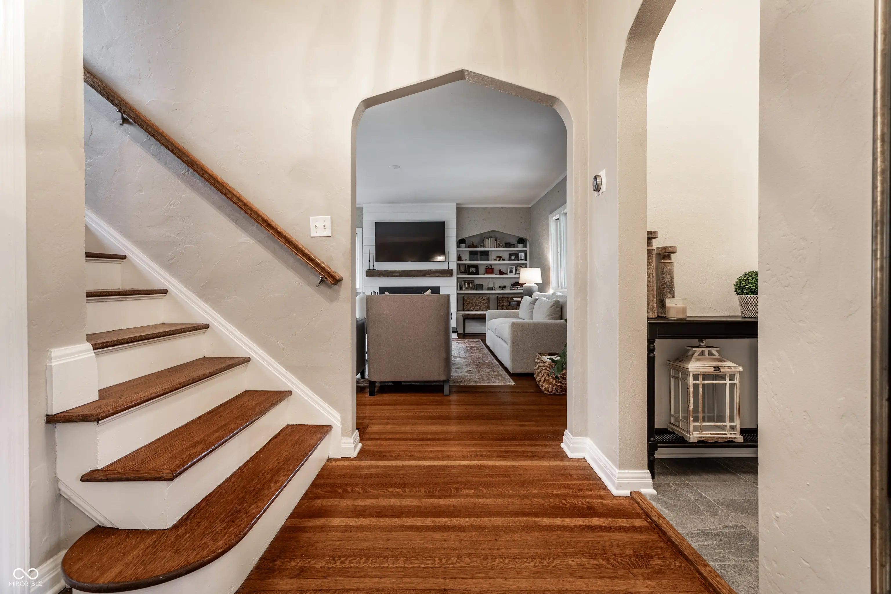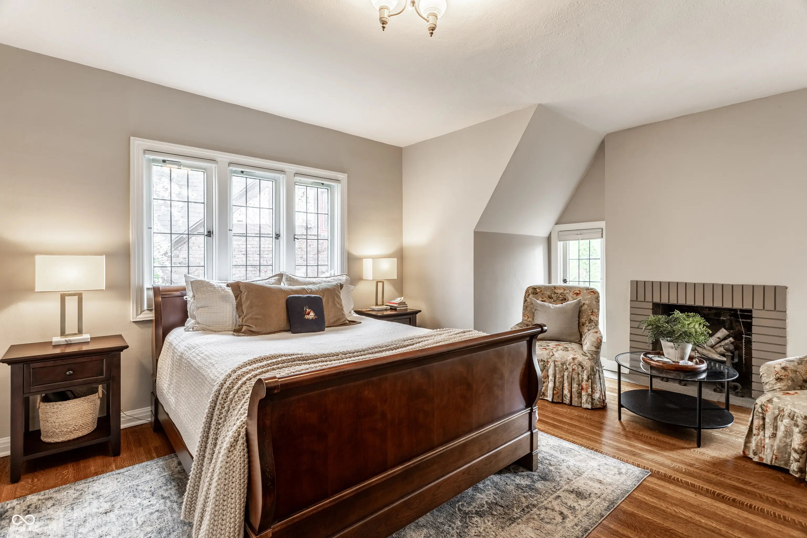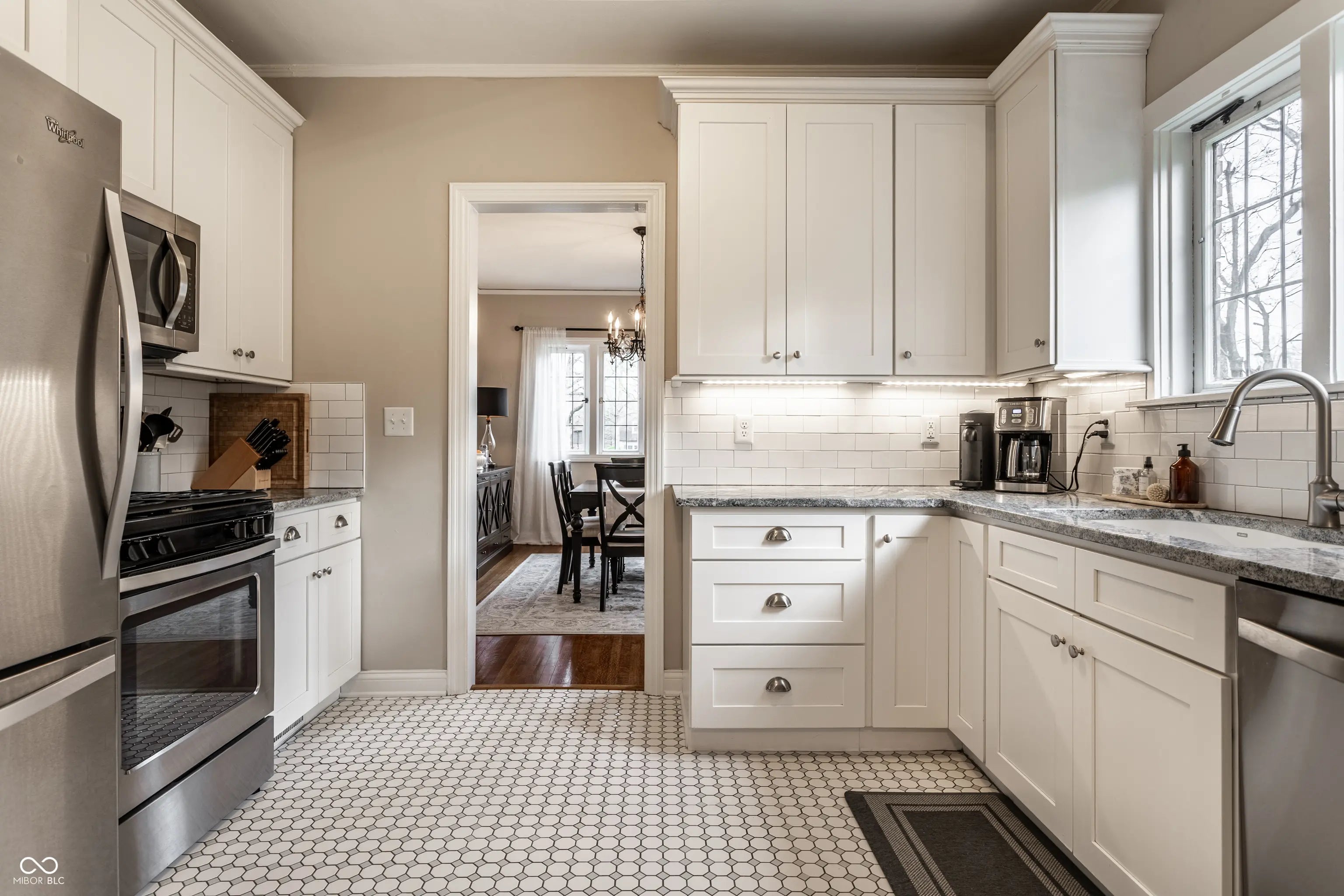 Absolute perfection! This meticulously maintained storybook home in Forest Hills radiates curb appeal from the moment you arrive. Every detail has been thoughtfully updated, blending timeless character, classic charm, and modern convenience. The main level welcomes you with a spacious living room featuring stunning leaded glass windows and a cozy fireplace-perfect for relaxing evenings. Beautiful hardwood floors run throughout, and every room has been freshly painted, including trim, walls, and crown molding, making this home truly move-in ready. From elegant arched doorways to serene, private gardens, this home feels like a peaceful oasis rich with history and charm. The formal dining room is filled with incredible natural light, creating an inviting space for gatherings and entertaining. The updated kitchen boasts granite countertops, stainless steel appliances, and an absolutely delightful breakfast nook-ideal for morning coffee or casual meals. Upstairs, you'll find two generously sized bedrooms, each with walk-in closets (the primary features two!). A beautifully updated full bathroom in the hall serves both bedrooms. The finished basement offers incredible flexibility, featuring a comfortable family room with newer carpet-or the potential for a third bedroom thanks to two egress windows-along with a full bathroom. The utility and laundry room is exceptionally clean and well-maintained. Enjoy added peace of mind with a newer perimeter drainage system and sump pump with battery backup. Washer and dryer are included. The irrigation system keeps the landscaping lush and vibrant with ease. Enjoy all seasons under the covered front porch, overlooking the incredible landscaped yard. Located just steps from the Monon Trail and the shops and dining along 54th Street, this unbeatable location perfectly complements the home's charm and livability.