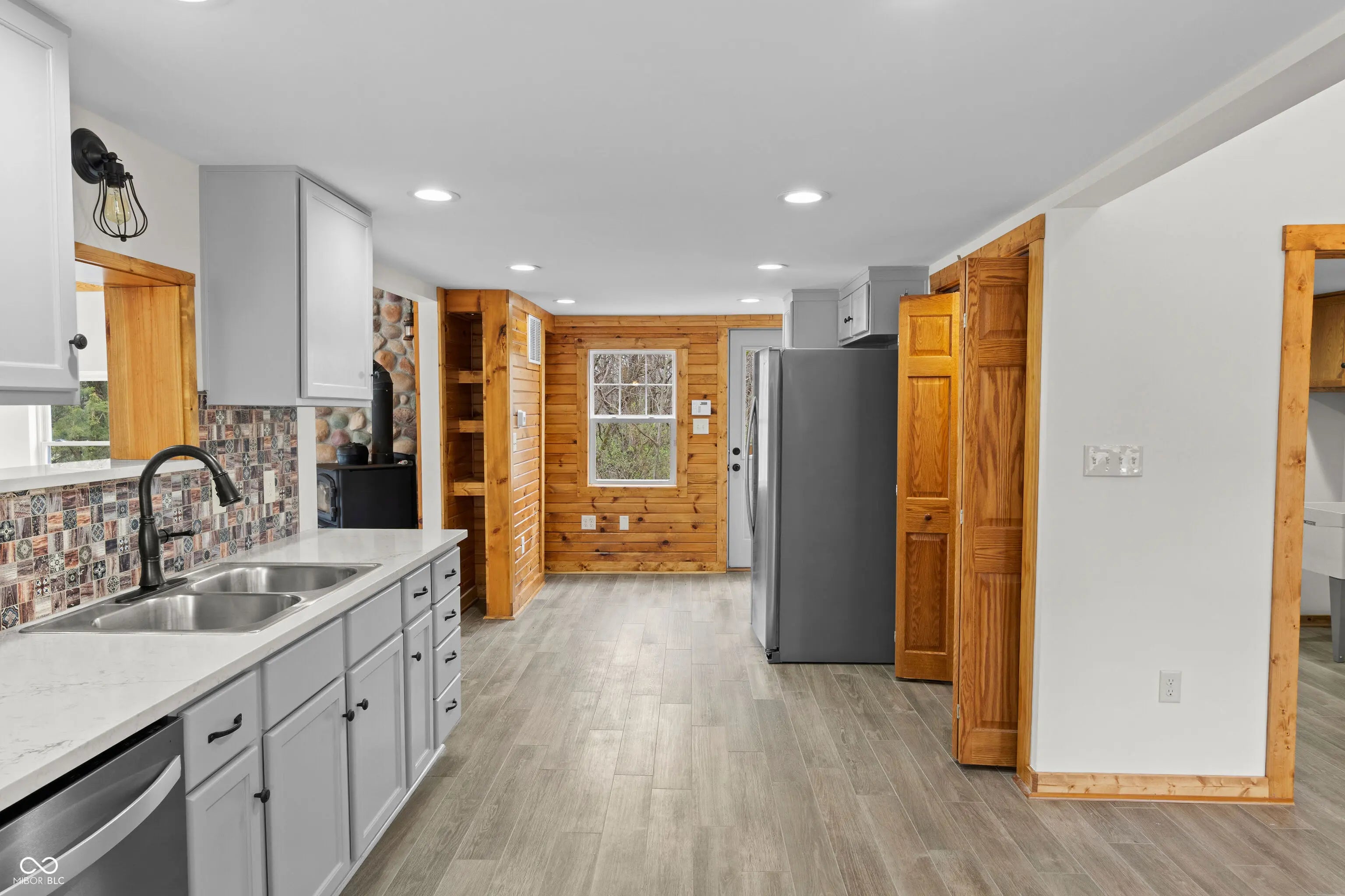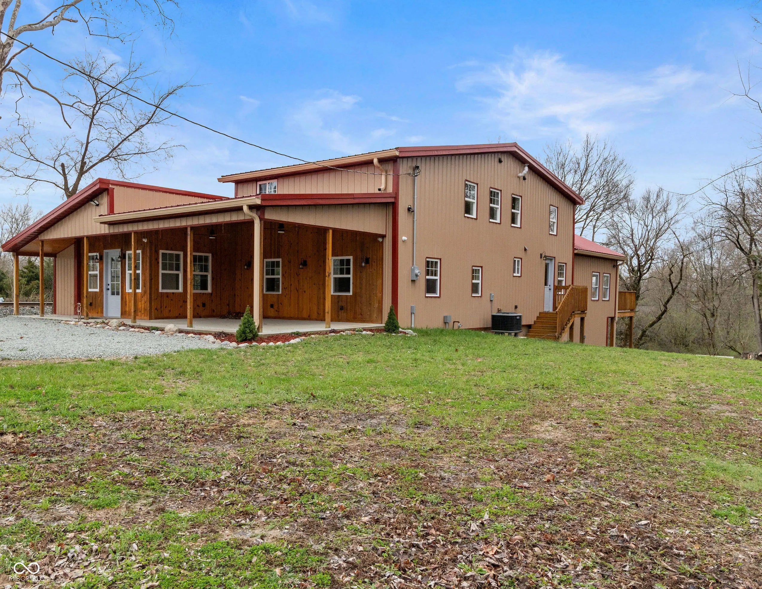 Rustic creekside retreat! Custom home featuring a lodge-style great room with a stunning stone fireplace. Chef's kitchen offers slate countertops, oak cabinetry, & new stainless steel appliances. Fully finished walkout basement includes a bar, rec room, & half bath-perfect for entertaining. Energy-efficient features include 3-zone HVAC, spray foam insulation, & fiberglass walls. Outdoor living shines with a double-layer deck, covered front porch, & private dock on Lick Creek. 4-car detached garage, spa-like bathrooms, security cameras, & exceptional attention to detail throughout. A one-of-a-kind blend of comfort, craftsmanship, & natural beauty-ideal for entertaining or relaxing. Don't miss this unique estate!