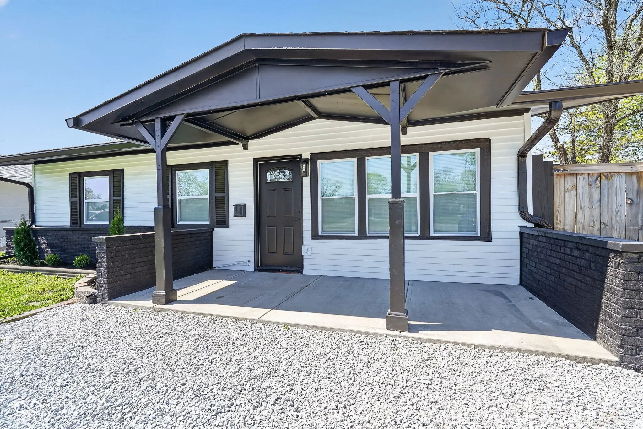 If you're looking for a fully updated home that is move in ready, look no further! 3116 Georgetown Road has been fully updated from top to bottom. Pull into the driveway and take in the striking white and black exterior. Step onto the covered front porch and enter the home to find brand new LVP floors. Living room is filled with lots of natural light and flows well into the dining area. Kitchen has been fully remodeled with shaker style cabinets, tile backsplash, quartz countertops and stainless steel appliances. Laundry room just outside of bedrooms in laundry closet. Three bedrooms are all nicely sized with plenty of storage. Full bath is stunning with new vanity, LVP floors, and tile shower with glass doors. Backyard is fully fenced with a patio. Detached two car garage offers plenty of room for parking and storage. New HVAC and water heater in home as well. All of this in a convenient Speedway / Eagledale location. Come take a look today!