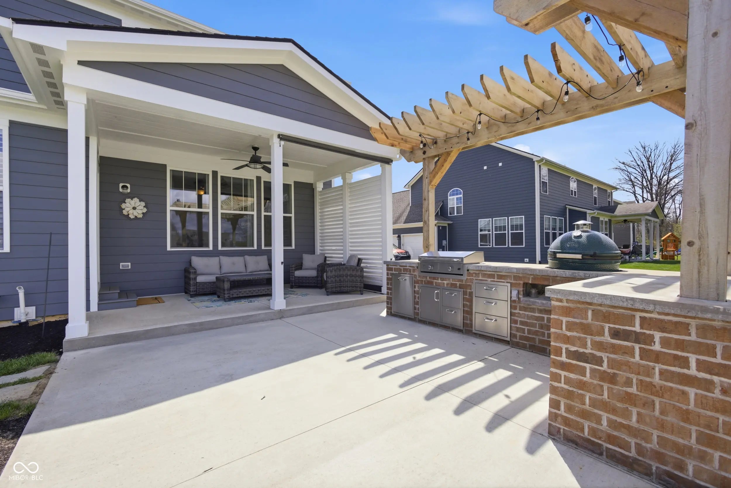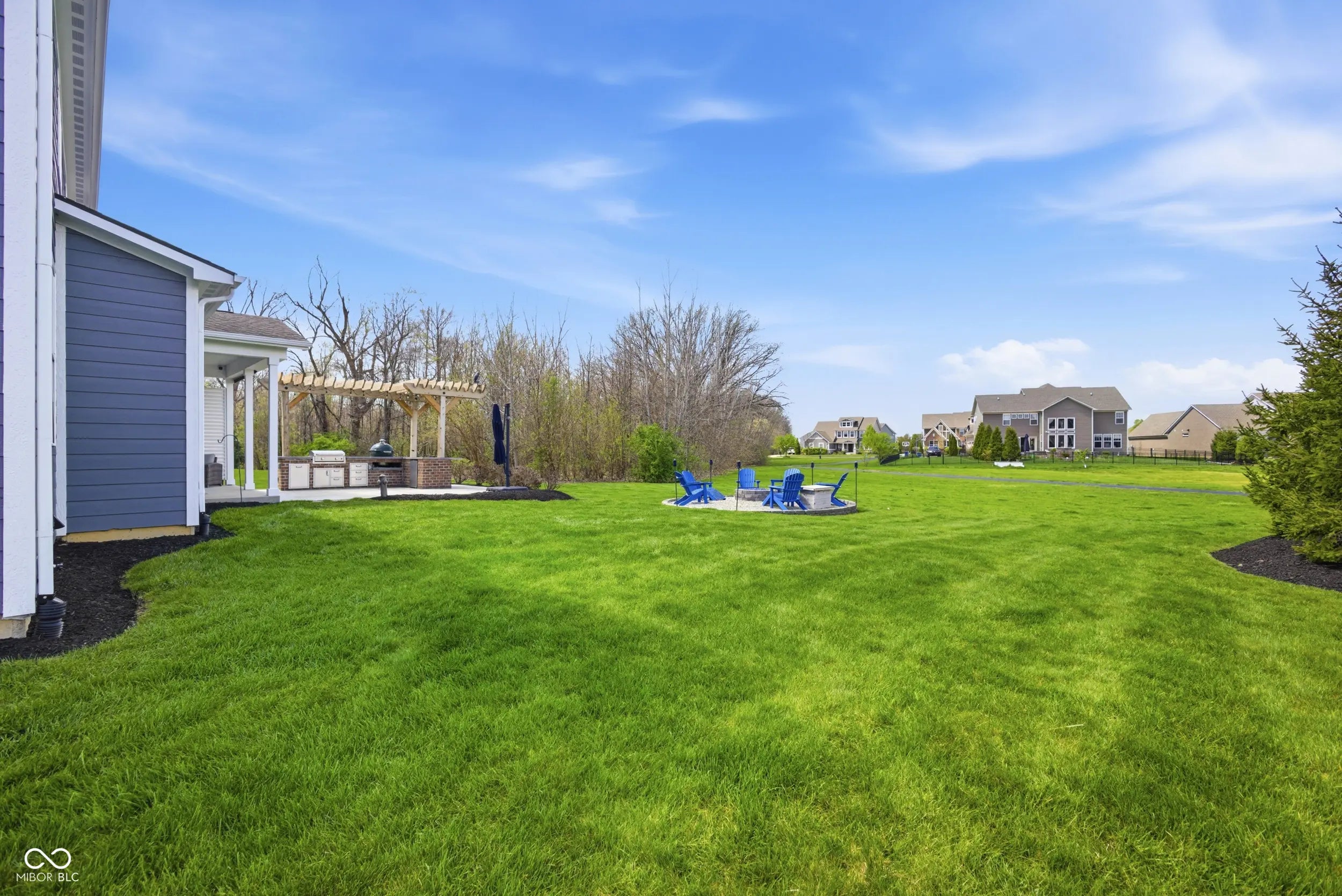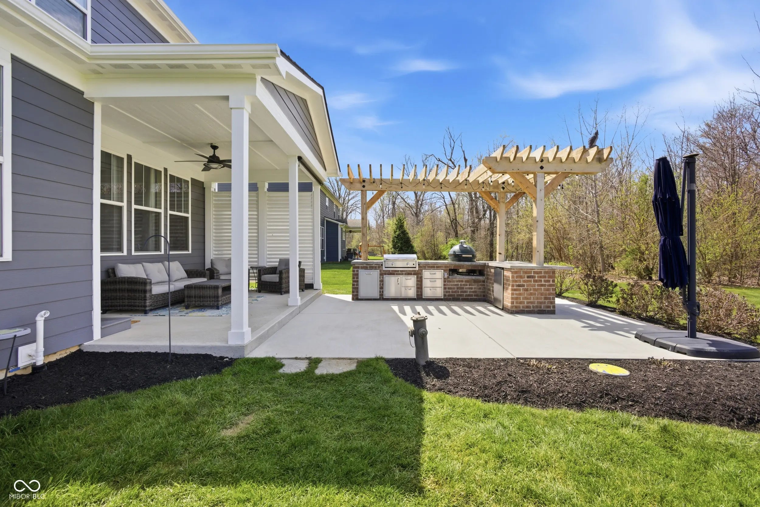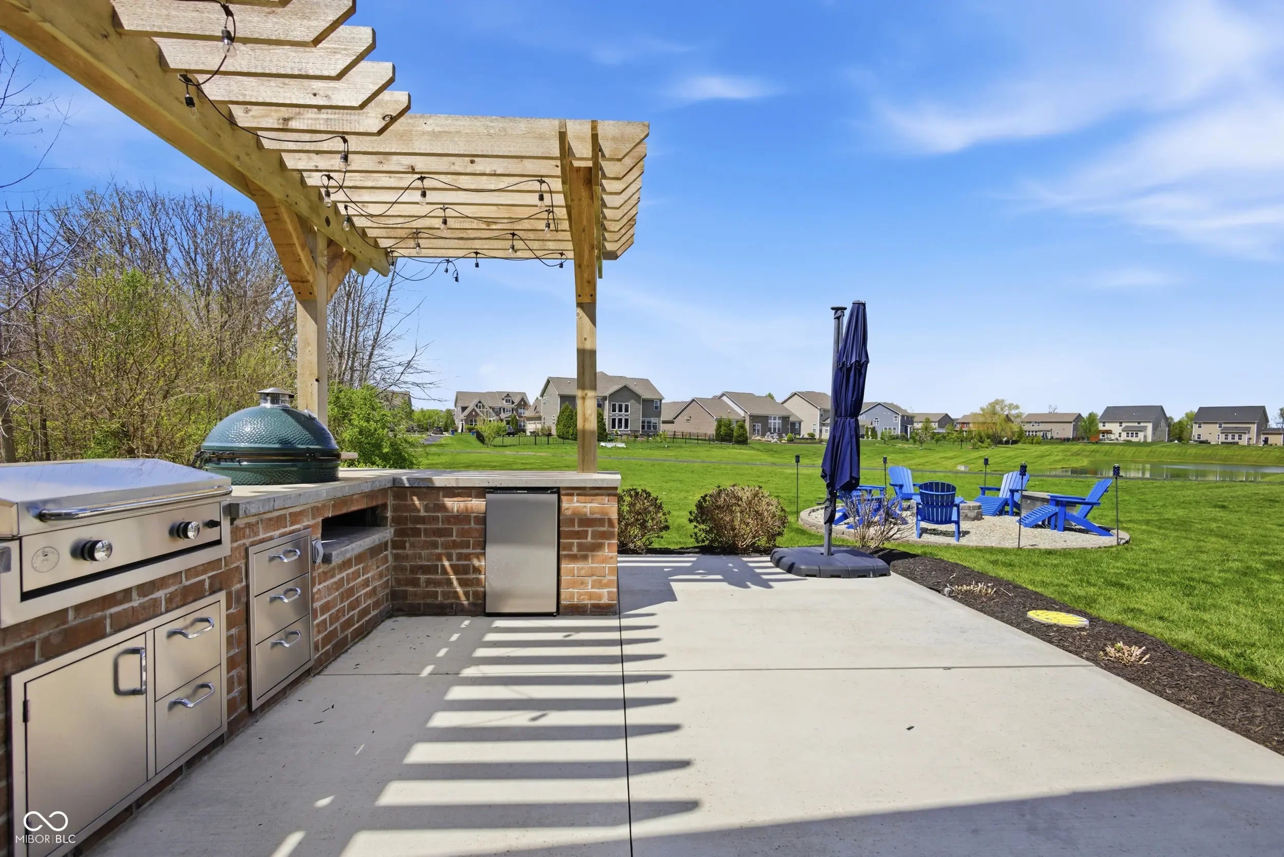 - Features: Gas Grill, Lighting, Fire Pit, Outdoor Kitchen, Sprinkler System